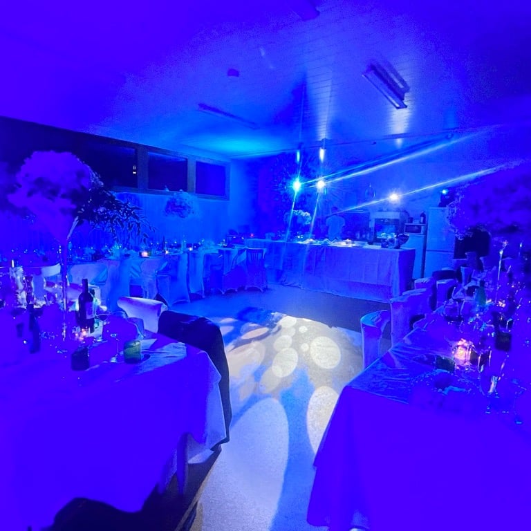 ✨ Décoration lumineuse & Personnalisation : Nous sublimons votre lieu de réception grâce à une mise en lumière architecturale adaptée à votre thème.